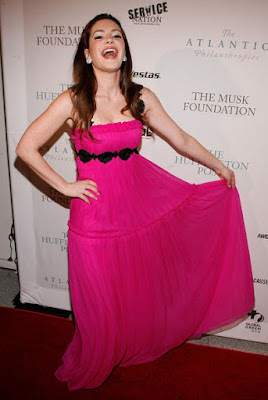 I can't decide which one of these she looks like a bigger moron in. But I think I will go with the second one. Did she really think that jump in the air "whoo!" pose would EVER look good? That's a "real" photoshoot too. Probably one she had to put together herself, because she works so hard people! I can see her telling the photog, "Ok, I think I'm gonna jump in the air from side profile and kinda go 'wha!' and it'll look really great and so adorable, make sure you get my ass from this angle." FAIL.